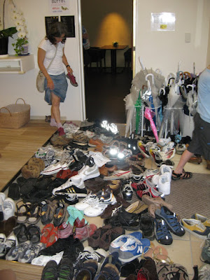Here's an example of what it can look like sometimes at J's House Hostel in Kyoto when everyone takes off their shoes